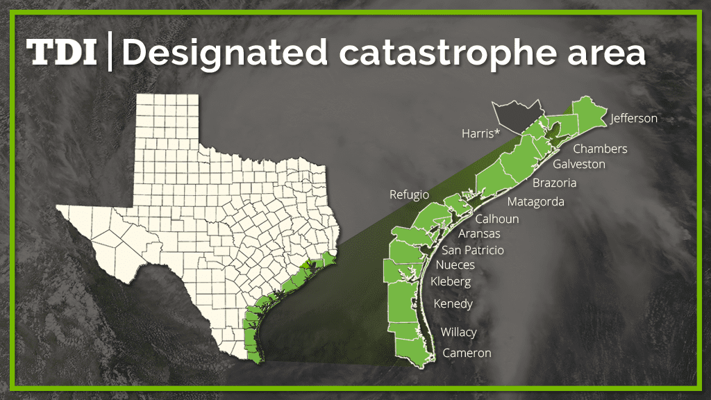 The Texas Department of Insurance (TDI) has designated 14 coastal counties, along with certain areas of Harris County, as catastrophe zones. Homeowners in these regions may be unable to secure private insurance for windstorm and hail damage and must obtain this coverage through the Texas Windstorm Insurance Association (TWIA).